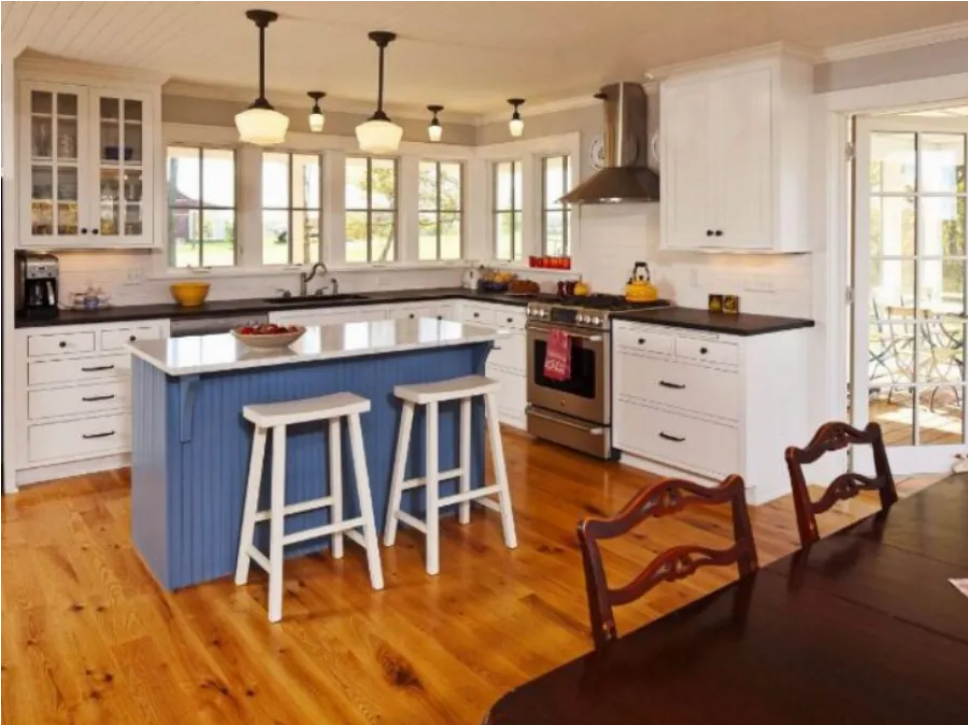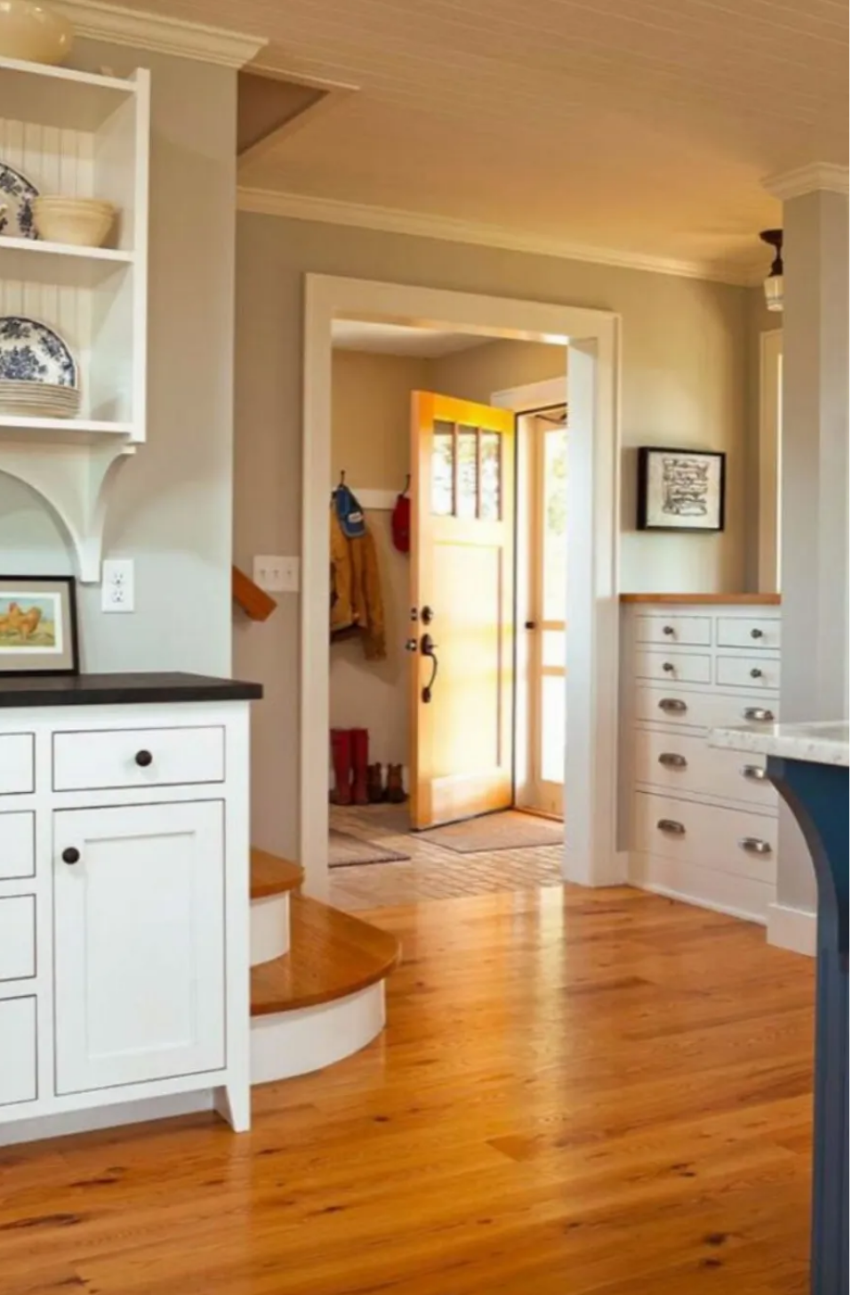 – Η κουζίνα είναι το κεντρικό σημείο του σπιτιού στο ισόγειο. Το λευκό στους τοίχους μαζί με το ξύλινο πάτωμα αντικατοπτρίζει το εξωτερικό του σπιτιού.