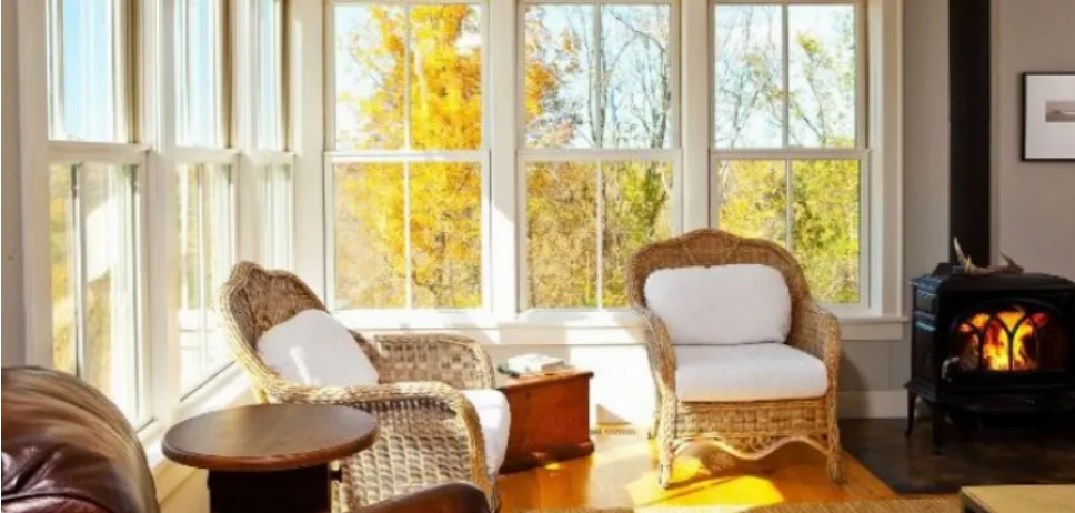 – Σε μια γωνία του σαλονιού υπάρχουν μεγάλα παράθυρα που χαρίζουν υπέροχη θέα έξω. Η σόμπα δίνει στιλ στον χώρο.