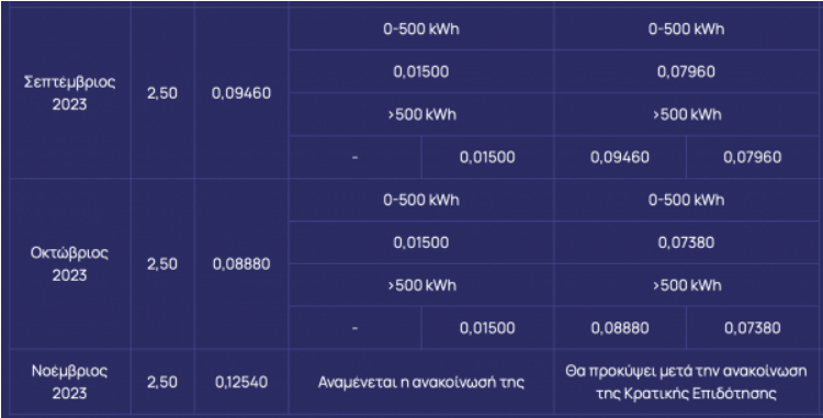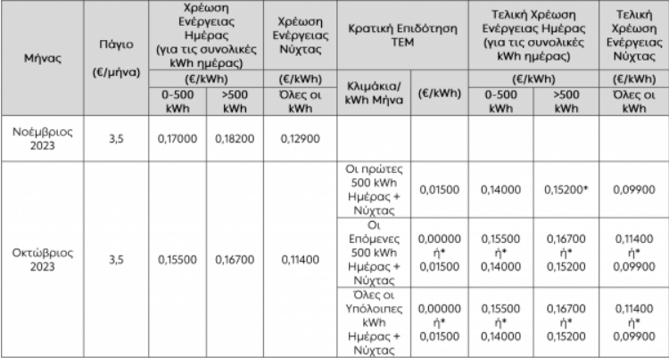 Πάνω από 500 kWh: 0,167ευρώ/kWh
