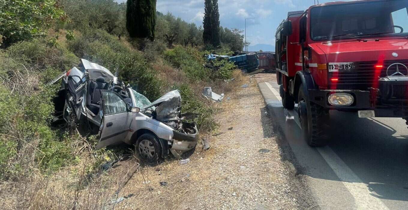 Ένα τραγικό τροχαίο δυστύχημα σημειώθηκε νωρίτερα στην εθνική οδό Κυπαρισσίας – Πύργου στην Μεσσηνία, όπου νταλίκα συνετρίβη με τρία αυτοκίνητα.