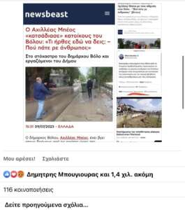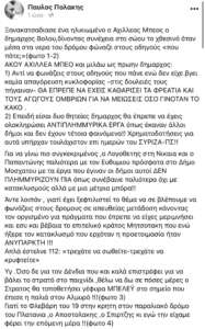 Συγκεκριμένα ο κ. Πολάκης έγραψε: Ξανακατσαδιασε ένα ηλικιωμένο ο Αχιλλεας Μπεος ο δημαρχος Βολου,δίνοντας συνέχεια στο σώου το χθεσινό όταν μέσα στα νερα του δρόμου φώναζε στους οδηγούς «που πάτε;»(φωτο 1-2)