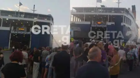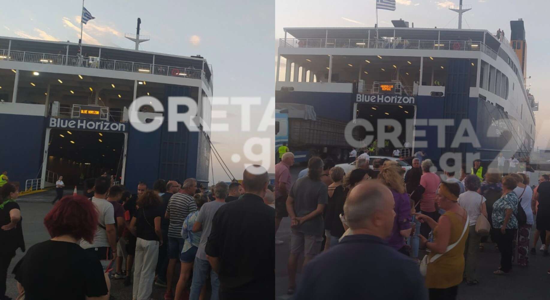 Όσο κόσμος επιβιβαζόταν στο Blue Horizon, οι συγκεντρωμένοι φώναζαν συνθήματα για τον Αντώνη ενώ μετά από λίγη ώρα υπό τον φόβο η διαμαρτυρία να μεταφερθεί και μέσα στο πλοίο ο καταπέλτης σηκώθηκε.