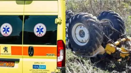 Χωρίς τις αισθήσεις του ανασύρθηκε ένας ηλικιωμένος που καταπλακώθηκε από τρακτέρ σε περιοχή της Σκύδρας, στην Πέλλα.