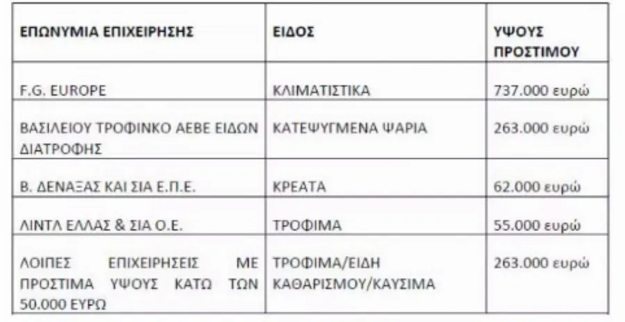 Σύμφωνα με τις διατάξεις του άρθρου 54 του ν. 5045/2023, περί ανακοίνωσης των επωνυμιών των επιχειρήσεων στις οποίες επιβλήθηκε πρόστιμο ύψους μεγαλύτερο από 50.000 ευρώ, επιβλήθηκαν τα ακόλουθα πρόστιμα ως ακολούθως: