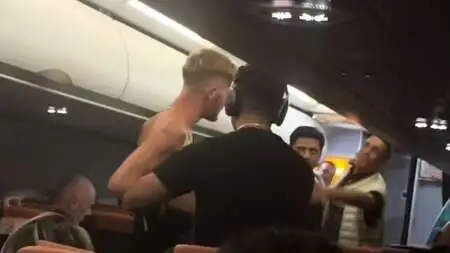 Ο νεαρός φαίνεται στο βίντεο που κυκλοφόρησε στα social media να λογομαχεί με τους συνεπιβάτες του. Το πλήρωμα και ένα ακόμη άτομο προσπαθούν να τον ηρεμήσουν.