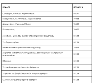 Εάν, λοιπόν, ανήκεις σε μία από τις παραπάνω κατηγορίες, το ποσό εποχικού επιδόματος που θα λαμβάνεις κυμαίνεται αναλόγως του επαγγέλματος που εξασκείς ή εξασκούσες ως εξής.
