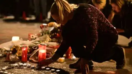 Κεριά σχηματίζουν τον αριθμό 57 δίπλα στα ονόματα των θυμάτων