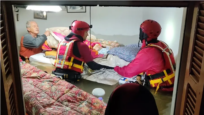 Στη συνέχεια ο διασώστης αναφέρθηκε στις αγωνιώδεις προσπάθειες που κατέβαλαν οι πυροσβέστες και τα μέλη των εθελοντικών ομάδων στις επιχειρήσεις απεγκλωβισμού ατόμων από τα σπίτια τους.
