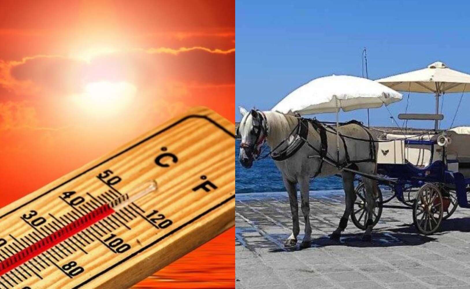Σύμφωνα με καταγγελία της φιλοζωικής σελίδας των Χανίων «Η προστασία των ζώων», τα άλογα άμαξας περιμένουν τον επόμενο πελάτη κάτω από τον καυτό ήλιο και τη θερμοκρασία να αγγίζει τους 40 βαθμούς Κελσίου.