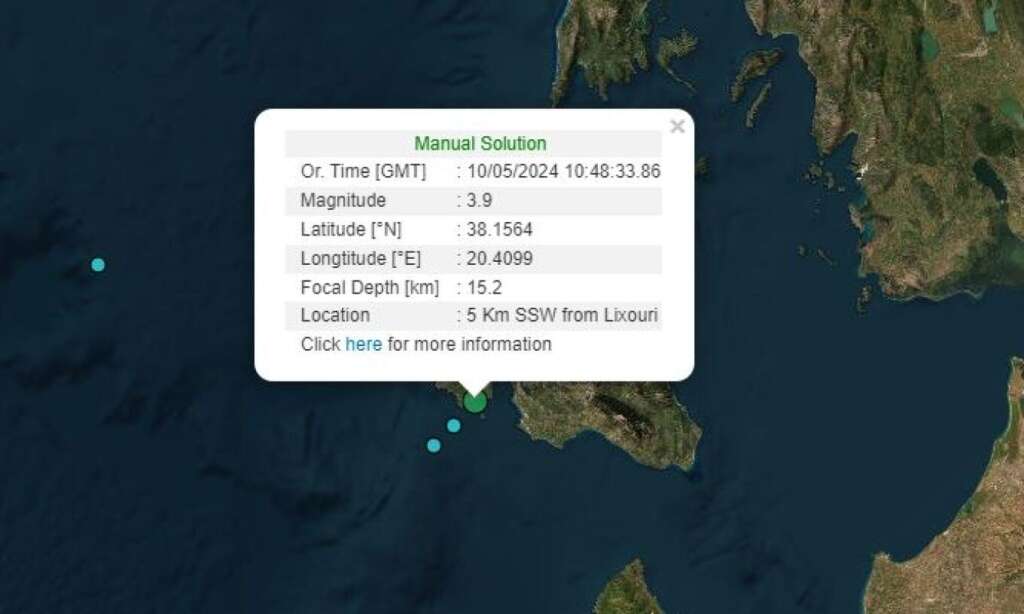 Σεισμός: Σημειώθηκε το μεσημέρι της Παρασκευής 10/5, ανοιχτά της Κεφαλονιάς. Ο σεισμός ήταν 3.9 Ρίχτερ της κλίμακας Ρίχτερ.