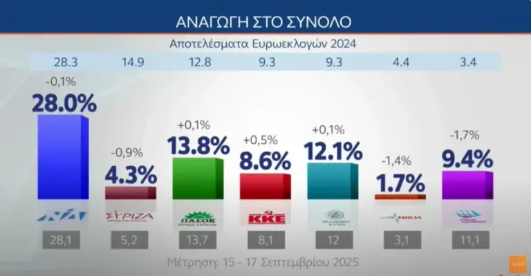 ΕλλάδαΔημοσκόπηση MRB: Μεγάλη πρωτιά για τη ΝΔ – Πόσο παίρνουν τα κόμματα