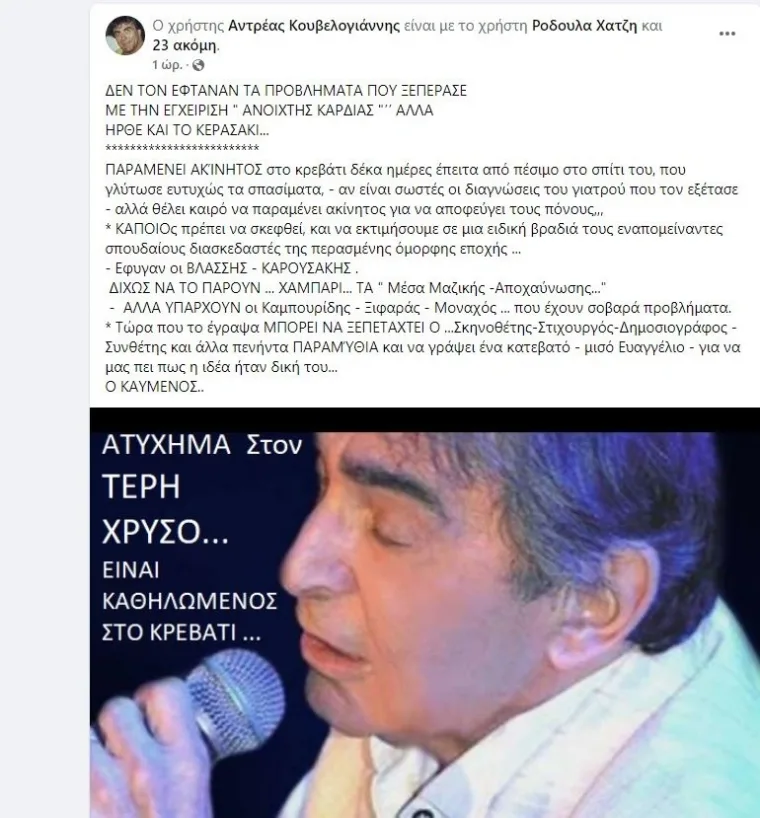 ΕλλάδαΔύσκολες ώρες για τον Τέρη Χρυσό, δυστυχώς ανακοινώθηκαν τα δυσάρεστα
