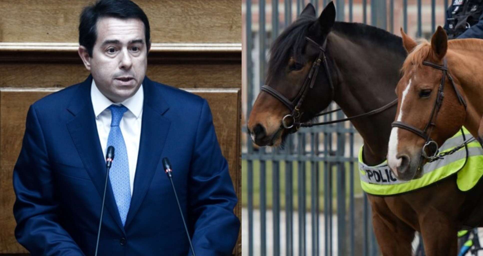 Τη δημιουργία έφιππου τμήματος στην αστυνομία το οποίο θα αποτελείται από έξι άλογα και αναβάτες αστυνομικούς υπέγραψε την Τρίτη ο νέος υπουργός Προστασίας του Πολίτη Νότης Μηταράκης, ανακοινώνοντας ταυτόχρονα την κατάργηση της πανεπιστημιακής αστυνομίας.
