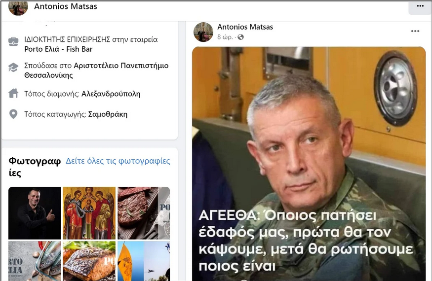 τού ελληνικής καταγωγής Χριστιανού στο «Facebook»-