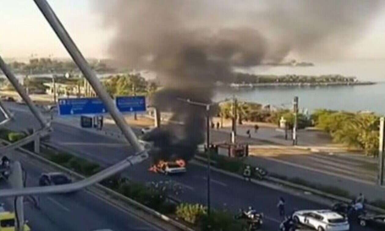 Εικόνα από το φλεγόμενο όχημα στον Άλιμο