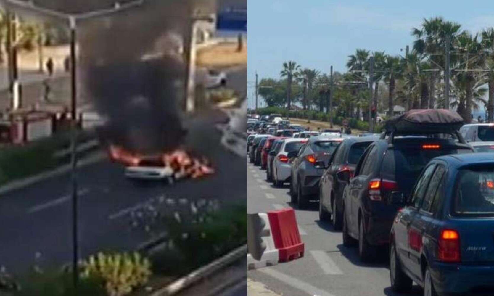 Το ατύχημα σημειώθηκε στο ρεύμα κυκλοφορίας προς Γλυφάδα, από το ύψος της λεωφόρου Καλαμακίου. Η φωτιά προκλήθηκε από μηχανική βλάβη και ο οδηγός του αυτοκινήτου είναι καλά στην υγεία του.