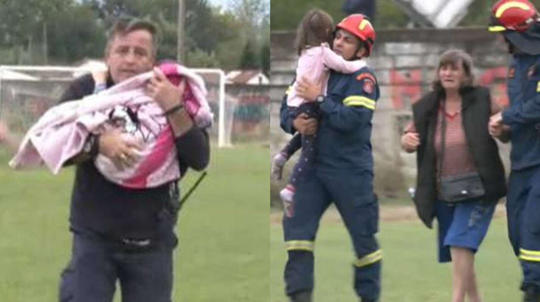 Τα στιγμιότυπα προκαλούν συγκίνηση, ενώ στη δεύτερη φωτογραφία φαίνεται η γιαγιά του μικρού κοριτσιού να κλαίει. Τόσο από στενοχώρια, αλλά κυρίως από ανακούφιση, για το γεγονός ότι η μικρή της εγγονή είναι σώα.