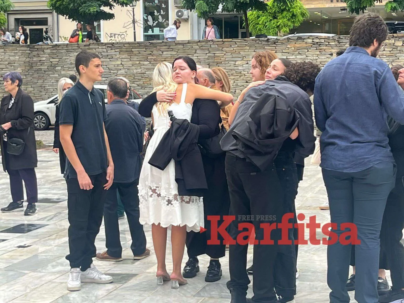 Τραγικές φιγούρες ο θείος του 26χρονου που έφτασε κρατώντας λουλούδια στα χέρια και η σύντροφος του νεαρού, ντυμένη στα λευκά.