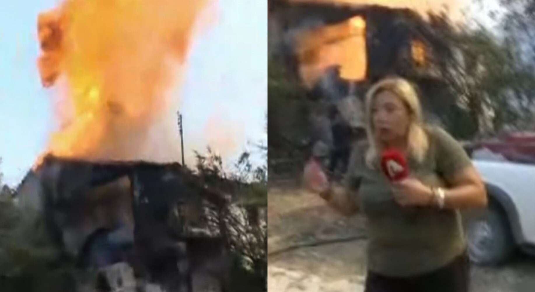 Την ώρα που κάλυπτε το ρεπορτάζ για τις φωτιές, στο χωριό Άβαντας, έγινε μία μεγάλη έκρηξη πίσω της, στο σπίτι που καιγόταν.