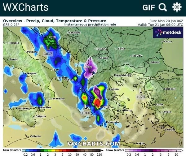 Δελτίο καιρού στις 20:00 – 20-01-2025