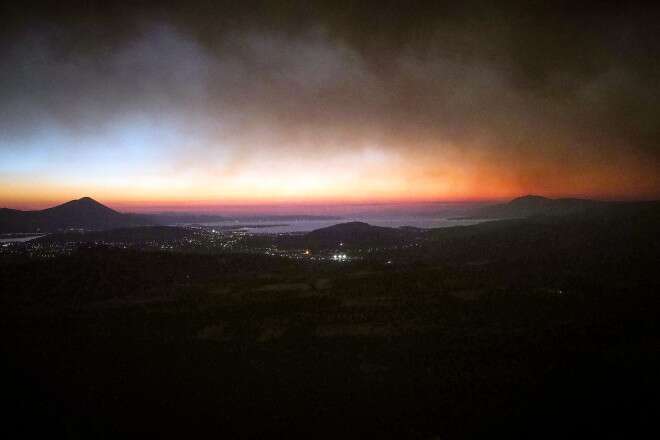 Η εικόνα της φωτιάς στην Εύβοια που ξέσπασε την Τετάρτη ήταν καλύτερη, καθώς οι πυροσβέστες με σύμμαχο τους τούς ήπιους ανέμους κατάφεραν να περιορίσουν τη φωτιά κατά τη διάρκεια της νύχτας.