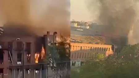 Μαύροι καπνοί σκέπασαν το απόγευμα τον ουρανό της Νίκαιας, με την πυρκαγιά να εκδηλώνεται και πάλι σε εγκαταλελειμμένο κτίριο, στη συμβολή των οδών Ολυμπίας και Θηβών, κοντά στο Γενικό Κρατικό της Νίκαιας.