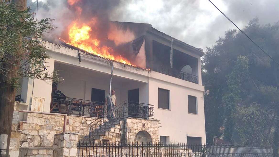 Στις εικόνες που μετέδωσε ο ΣΚΑΪ, διακρίνονται δύο σπίτια, το ένα δίπλα στο άλλο, στην οδό Μάρκου Μπότσαρη, στο Πάτημα Βριλησσίων να έχουν τυλιχτεί στις φλόγες. Στο ίδιο βίντεο, συγκλονίζουν οι εικόνες ενός τραυματισμένου σκύλου.