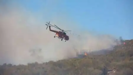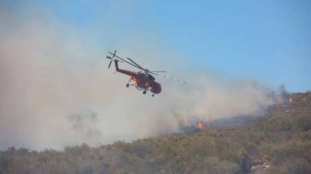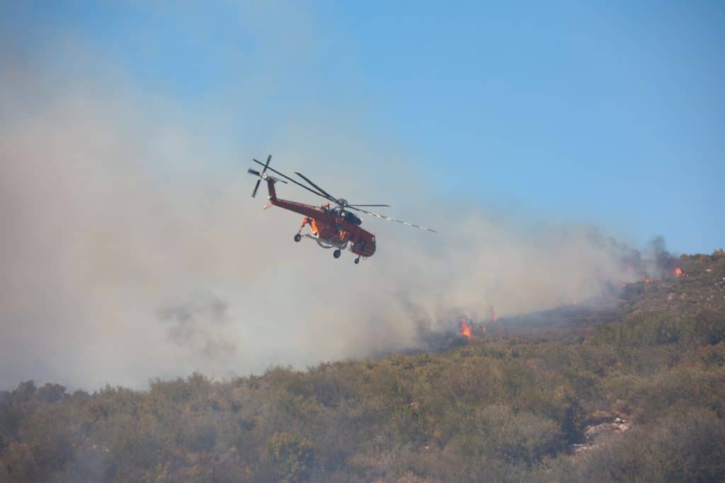Συγκεκριμένα, 60 πυροσβέστες, 3 ομάδες πεζοπόρων, 14 οχήματα, 4 ελικόπτερα και 2 αεροπλάνα συνδράμουν στην προσπάθεια της κατάσβεσης.