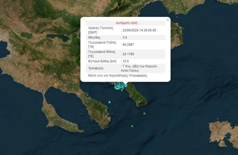 Σεισμός, μεγέθους 3,5 Ρίχτερ, σημειώθηκε το απόγευμα της Δευτέρας στο Άγιο Όρος σύμφωνα με το Γεωδυναμικό Ινστιτούτο.