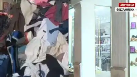 Έτσι, το πεζοδρόμιο γέμισε με ρούχα, πλαστικές κούκλες, κρεμάστρες ακόμα και… μονάδα κλιματιστικού. Οι περαστικοί, δε, δοκίμαζαν ό,τι τους άρεσε και το έπαιρναν μαζί τους.