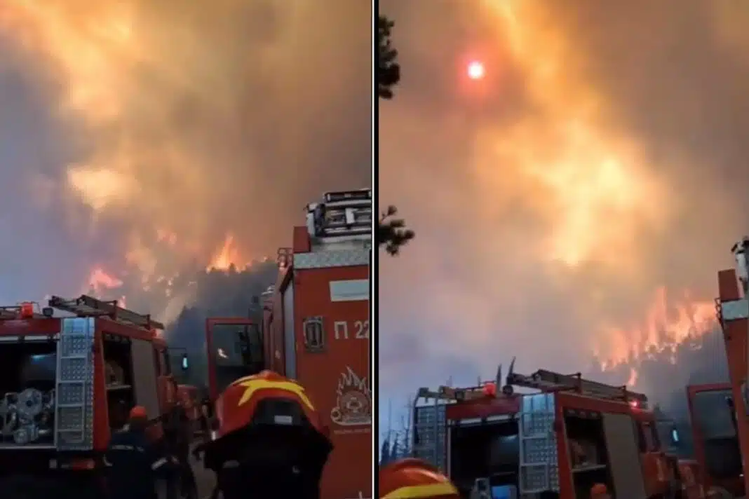 Όπως προσέθεσε, «η πυρκαγιά καίει ένα πανέμορφο τοπίο, με πεύκα και έλατα, σε υψόμετρο 1.000 μέτρων».