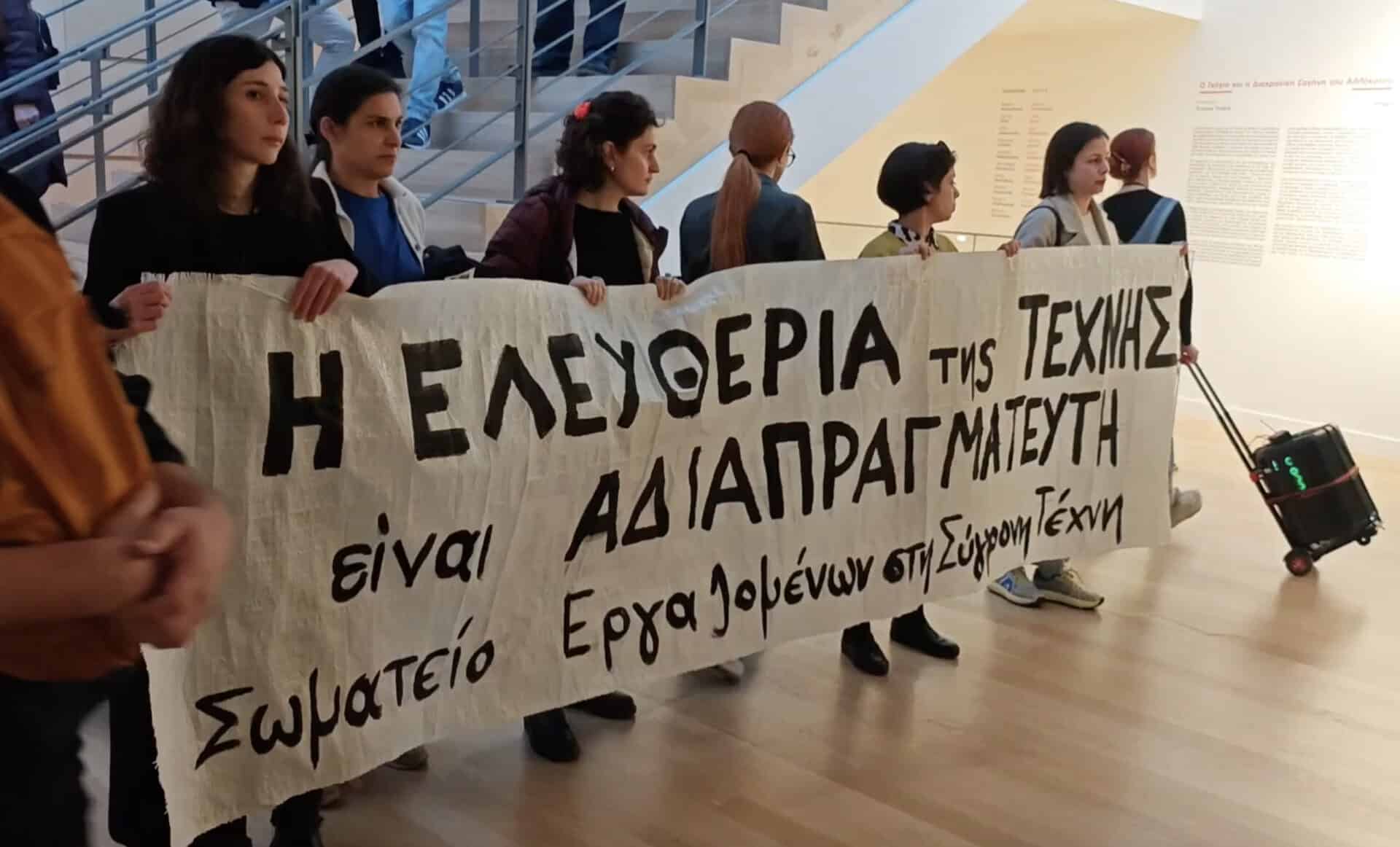 Στη διαμαρτυρία συμμετείχαν το Σωματείο Εργαζόμενων στη Σύγχρονη Τέχνη, άτομα από το Σωματείο Εκτάκτου Προσωπικού του υπουργείου Πολιτισμού και άλλοι.