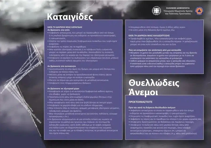 Οι οδηγίες της Γενικής Γραμματείας Πολιτικής Προστασίας