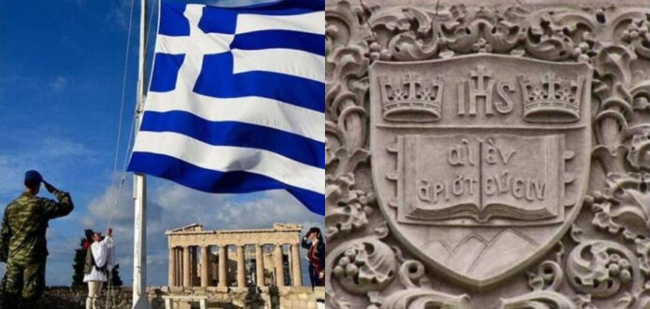 10. Πανεπιστήμιο «Yale» στις ΗΠΑ. Φράση από την «Πολιτεία» του Πλάτωνος: «Λαμπάδια ἔχοντες διαδώσουσιν ἀλλήλοις» (Οι φέροντες τις δάδες τις μεταλαμπαδεύουν ο ένας στον άλλον).