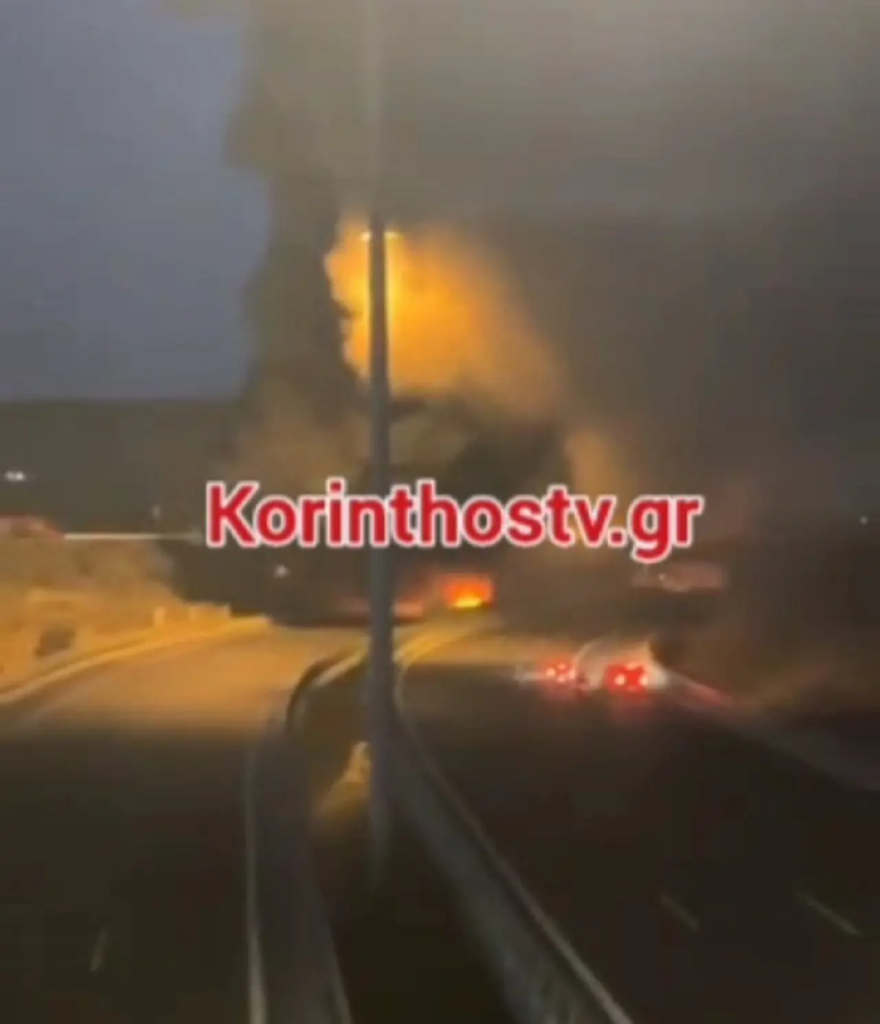 Ανατροπή βυτιοφόρου και φωτιά που προκλήθηκε μετά από έκρηξη, στην Εθνική Οδό Αθηνών – Κορίνθου, στο σημείο της γέφυρα του Ισθμού,έχει προκαλέσει πανικό.