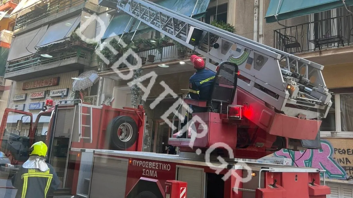 Το διαμέρισμα βρίσκεται στη συμβολή των οδών Αλκαμένους και Αγίου Μελετίου, στο κέντρο της Αθήνας – Επιχείρηση της πυροσβεστικής για την κατάσβεση της φωτιάς