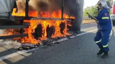 Σοβαρό περιστατικό πυρκαγιάς σημειώθηκε στην Ιονία Οδό, στο 159,6ο χιλιόμετρο, στο ρεύμα προς Ιωάννινα, όταν φορτηγό με σερβικές πινακίδες που μετέφερε πακέτα επεξεργασμένου καπνού, «τυλίχθηκε» στις φλόγες.
