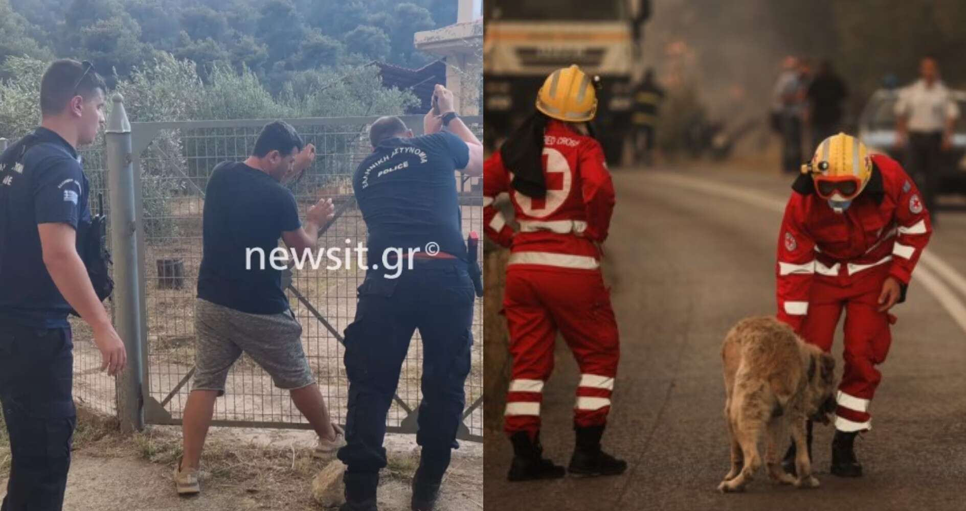 Τεράστια είναι η βοήθεια των αστυνομικών που συνδράμουν για τον απεγκλωβισμό όχι των ανθρώπων, αλλά και των ζωών. Σε ένα σπίτι κοντά στη Νέα Ζωή Μάνδρας αστυνομικοί έσπασαν την καγκελόπορτα προκειμένου να σώσουν ένα σκυλάκι που ήταν εγκλωβισμένο. Προσπαθούσαν να κάθε τρόπο να ανοίξουν την πόρτα για να πάρουν μαζί τους το σκυλί και μην απειληθεί από το πύρινο μέτωπο.