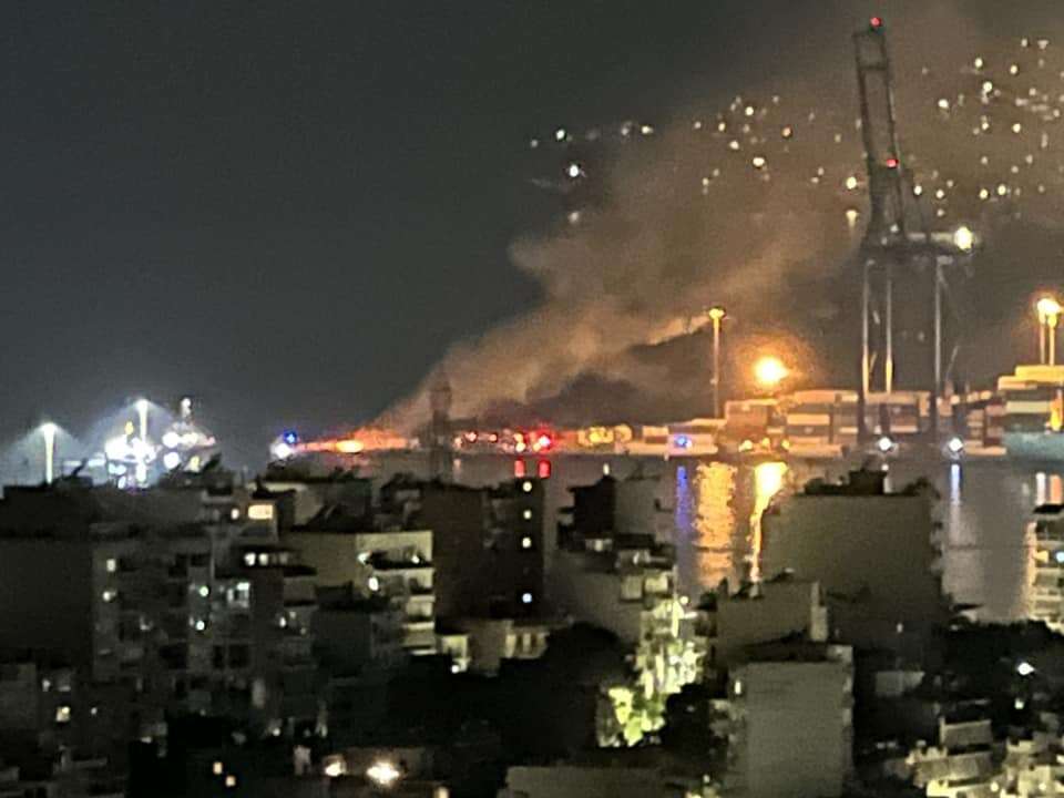 Σύμφωνα με μαρτυρίες η φωτιά εκδηλώθηκε στο Ικόνιο στην προβλήματα με τα κοντέινερς.