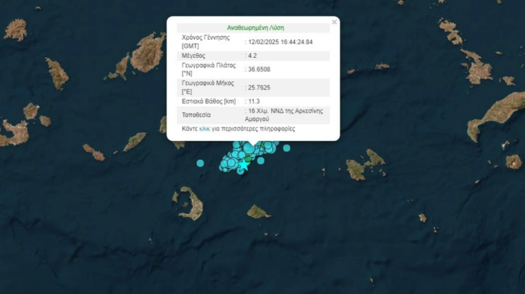 Συγκεκριμένα, σύμφωνα με το Γεωδυναμικού Ινστιτούτου, ο σεισμός έγινε στις 18:44 και το επίκεντρο εντοπίστηκε 16 χιλιόμετρα νότια-νοτιοδυτικά της Αρκεσίνης Αμοργού.