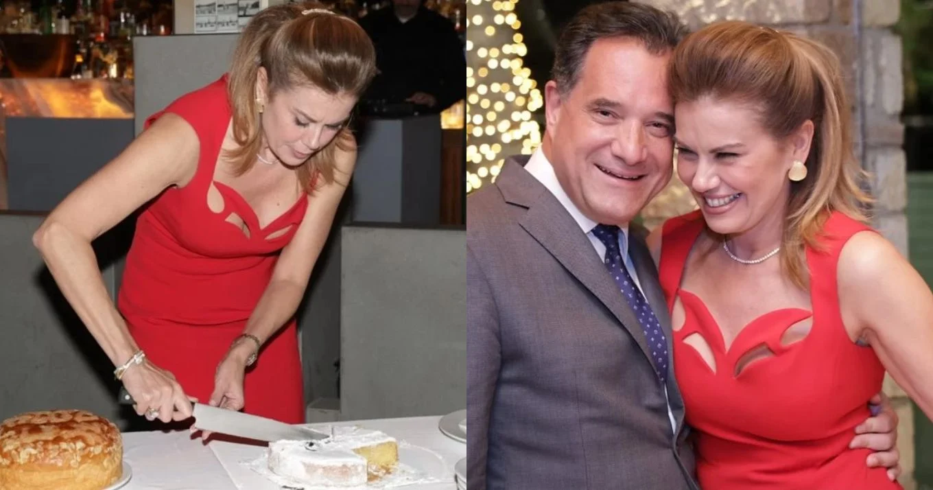 Η Ευγενία Μανωλίδου έκοψε την πρωτοχρονιάτικη πίτα στην Ελληνική Αγωγή, χθες, Παρασκευή, παρουσία του συζύγου της, Άδωνι Γεωργιάδη και εντυπωσίασε με το φόρεμα που επέλεξε να φορέσει.