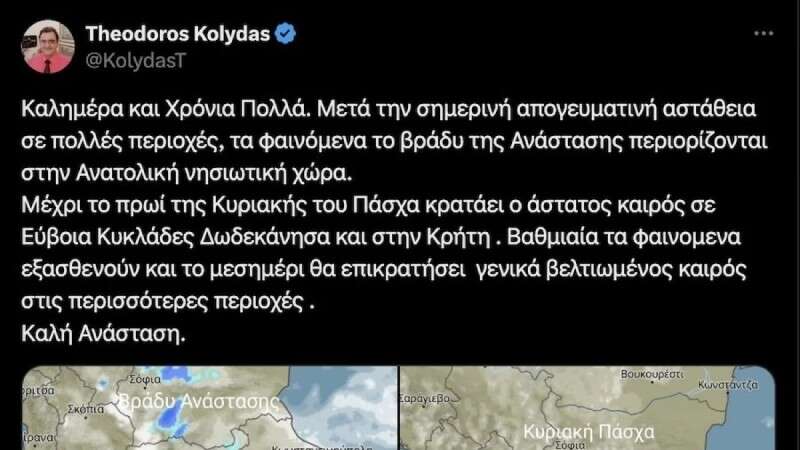 Συγκεκριμένα, σε ανάρτησή του στο Χ, ο Θοδωρής Κολυδάς έγραψε: