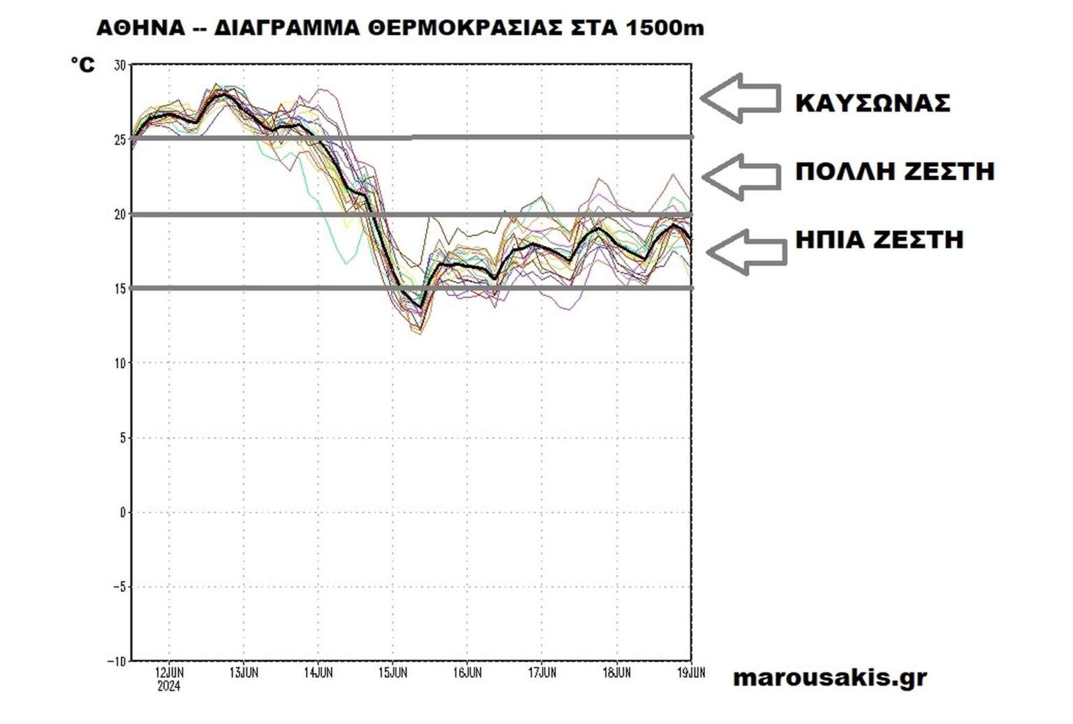 Η σύγκρουση της πολύ θερμής αέριας μάζας με την ψυχρότερη που ακολουθεί θα δημιουργήσει έντονη αστάθεια και άρα επικίνδυνες καταιγίδες με έμφαση τα βόρεια τμήματα».