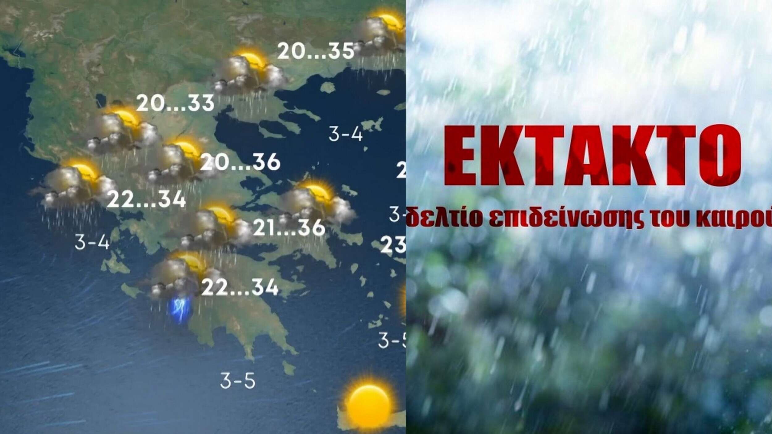 Ισχυρές βροχές και καταιγίδες προβλέπονται στο Ιόνιο, στη δυτική Στερεά, την Ήπειρο, τη δυτική Πελοπόννησο, τη Θεσσαλία και τις Σποράδες, στην κεντρική και ανατολική Μακεδονία (συμπεριλαμβανομένης της Θεσσαλονίκης) και πιθανόν στα βόρεια τμήματα της ανατολικής Στερεάς και της Εύβοιας.