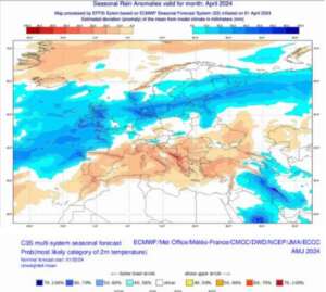 Στο δεύτερο χάρτη βλέπουμε οτι η πιθανότητα ο Απρίλης ,ο Μάιος και ο Ιούνιος να είναι πιο ζεστός από τα κανονικά επίπεδα είναι πάνω από 70%!