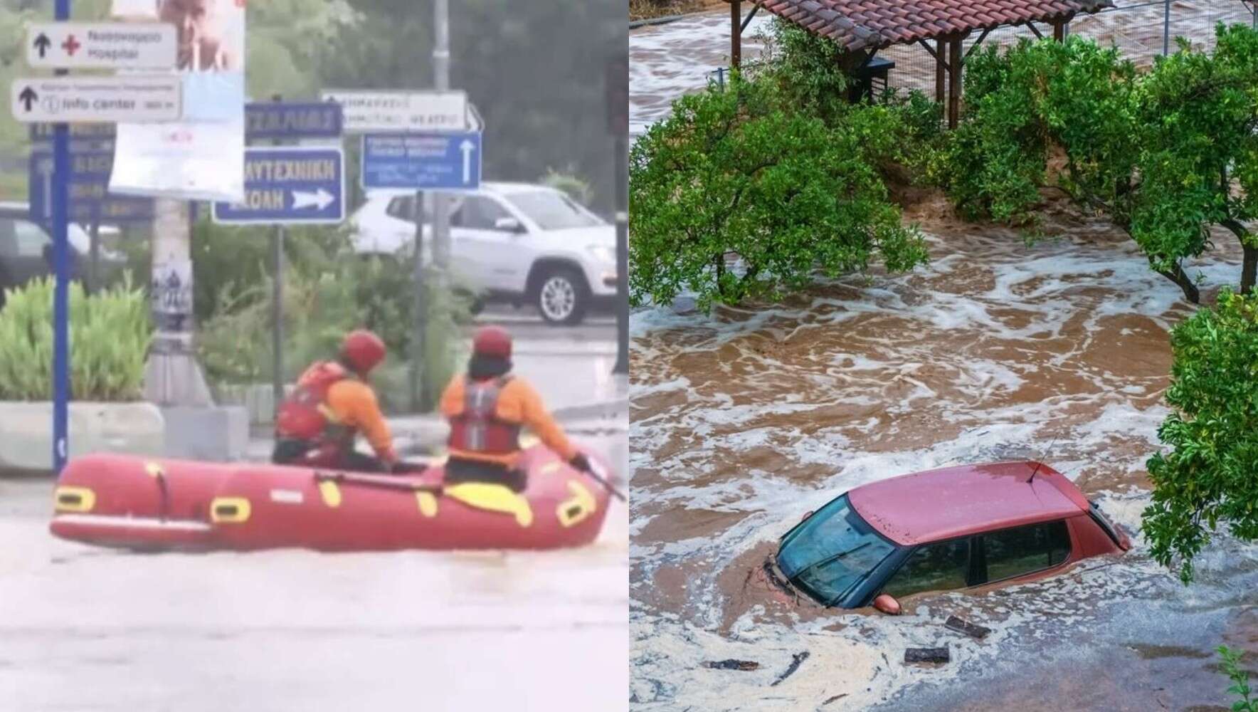 Μάλιστα, οι πυροσβέστες επιστράτευσαν και φουσκωτό σκάφος κάνοντας κουπί μέσα στους δρόμους του Βόλου για να βρεθούν στα σημεία όπου υπάρχουν εγκλωβισμένοι εργαζόμενοι, όπως μετέδωσε ο ΣΚΑΪ.