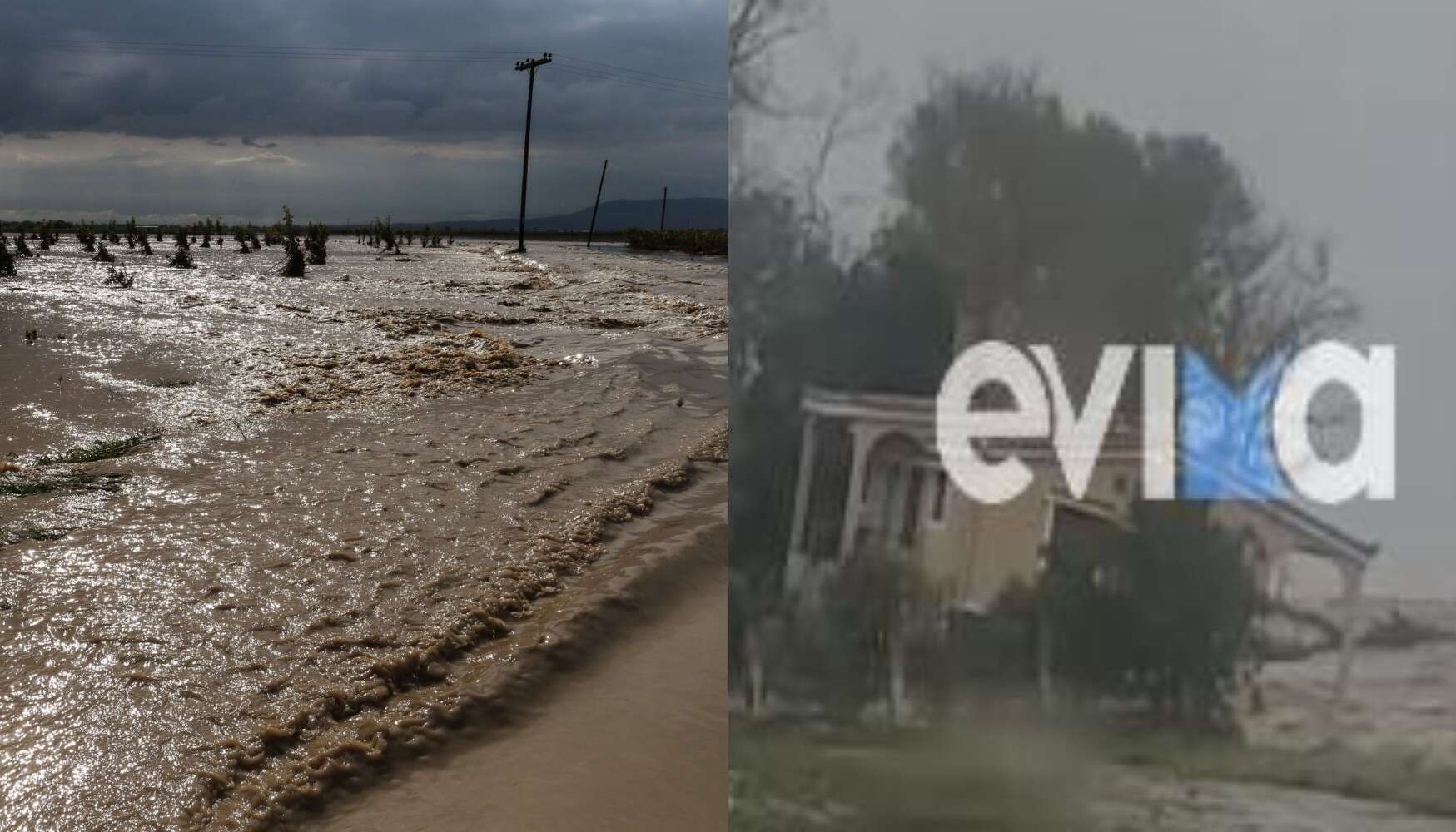 Πρωτόγνωρες και συγκλονιστικές εικόνες στην Εύβοια, η οποία για δεύτερη ημέρα είναι στο μάτι της κακοκαιρίας Elias.