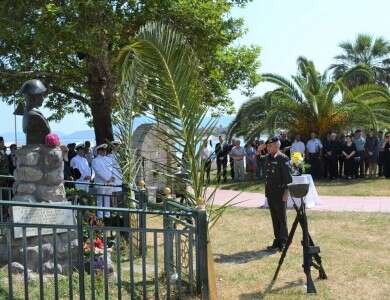 Στο μνημείο προς τιμήν του τελέστηκε σήμερα (24/6), όπως κάθε χρόνο, Επιμνημόσυνη Δέηση, τηρήθηκε ενός λεπτού σιγή και ανακρούστηκε ο Εθνικός Ύμνος, ενώ πραγματοποιήθηκε κατάθεση στεφάνων: