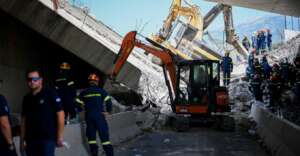 Στο σημείο βρίσκονται ασθενοφόρα και άνδρες της πυροσβεστικής που με τα χέρια και εκπαιδευμένο σκύλο ψάχνουν κάτω από τους τόνους μπετό που έχουν πέσει. Οι εικόνες από το σημείο είναι συγκλονιστικές.