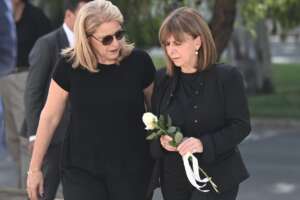 Κηδεία Καίτης Κωνσταντίνου: «Σπάραξαν» όλοι με το στεφάνι που της έστειλαν οι φίλες της